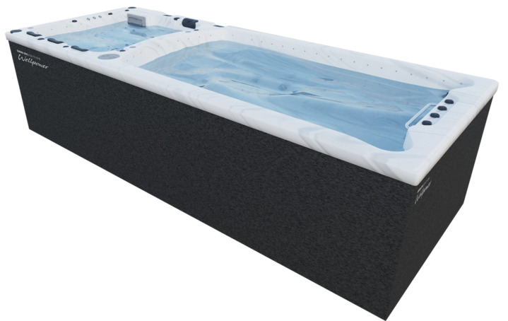 Maße 587 x 230 x 160 cm Sitze 2 Liegen 2 Jets gesamt 44 Wasservolumen 7150 L (Swim), 1350 L (Whirl) Nettogewicht 1500 kg Getränkeablagen 6 Beleuchtung Farblicht, 39 LEDs Fontäne/Wasserfall 3/- -